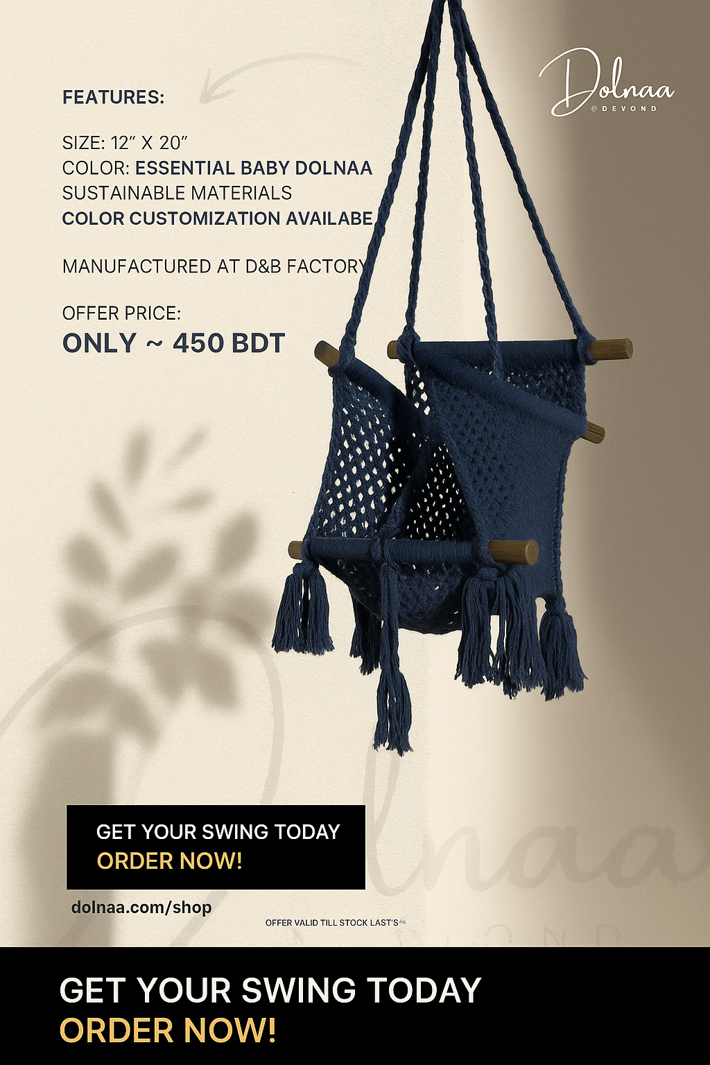 🌟 Dolnaa Macrame Swing: Pink Baby Dolnaa 12″