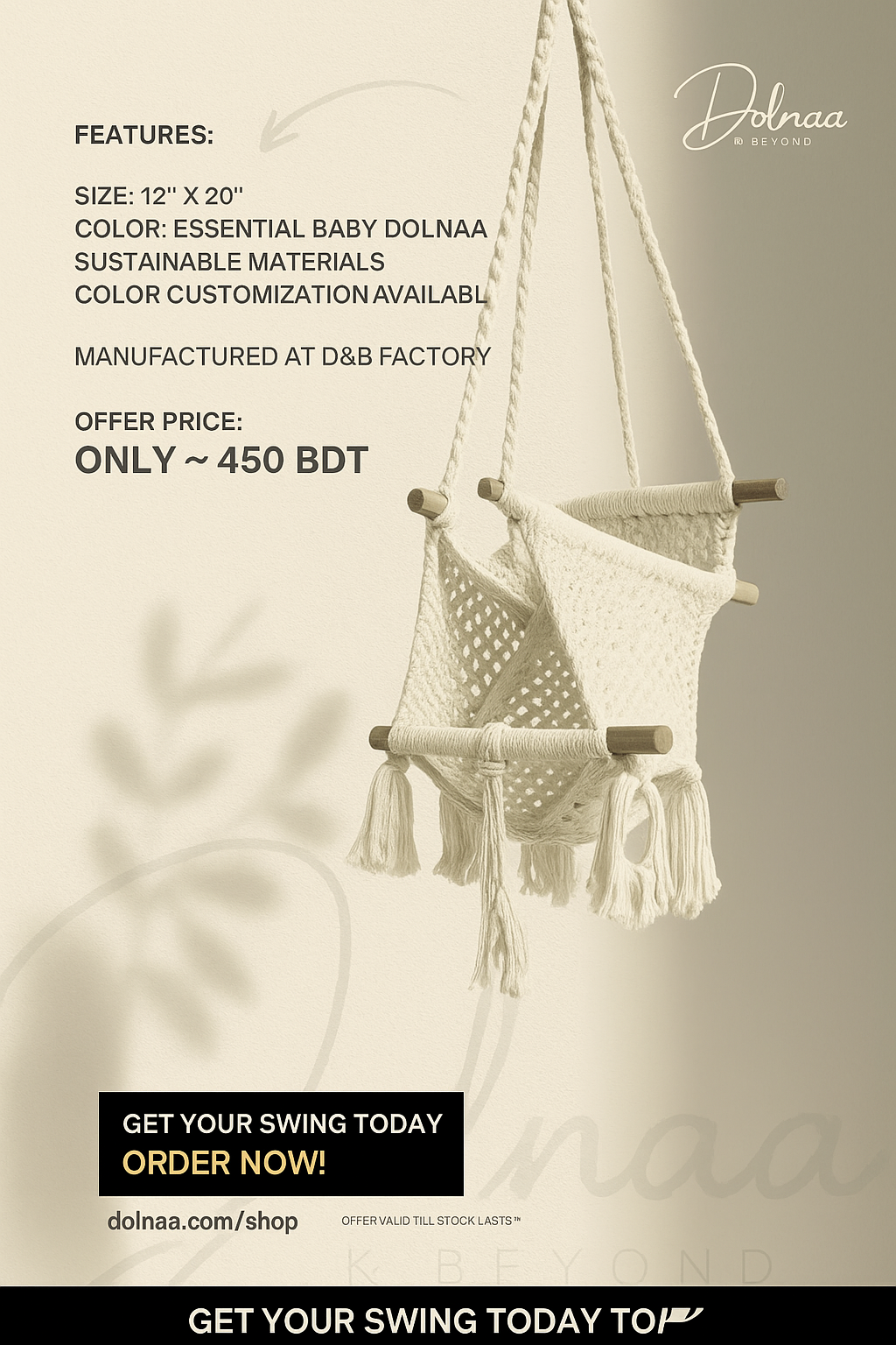 🌟 Dolnaa Macrame Swing: Pink Baby Dolnaa 12″