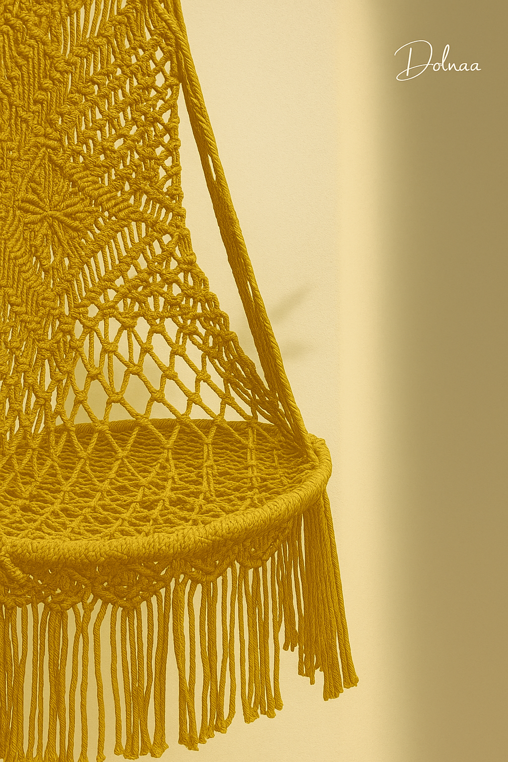 The macrame style makes this swing versatile for both Indoor and Outdoor use (e.g., in a bedroom corner, living room, balcony, patio, or garden).